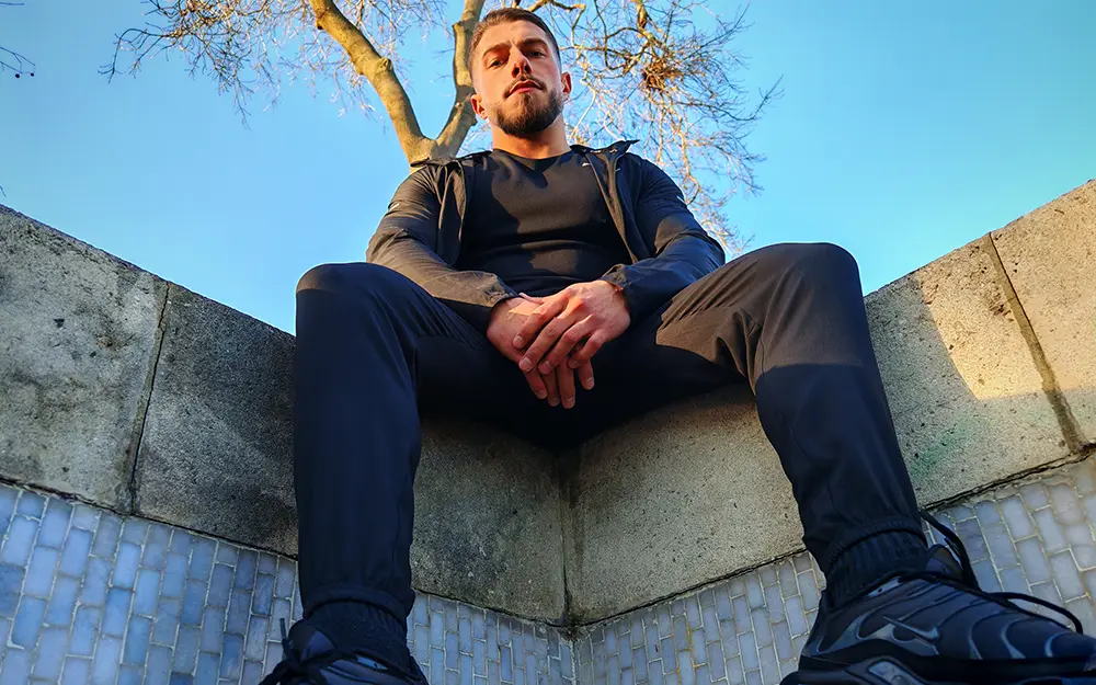 By day, he’s grounded and switched on — no drama, no airs — but once the lights are up and the camera’s rolling, something else kicks in. There’s a smug little grin, a slow confidence, and an intensity that doesn’t need shouting about. The kind of lad who leans back, takes his time, and lets you come to him.