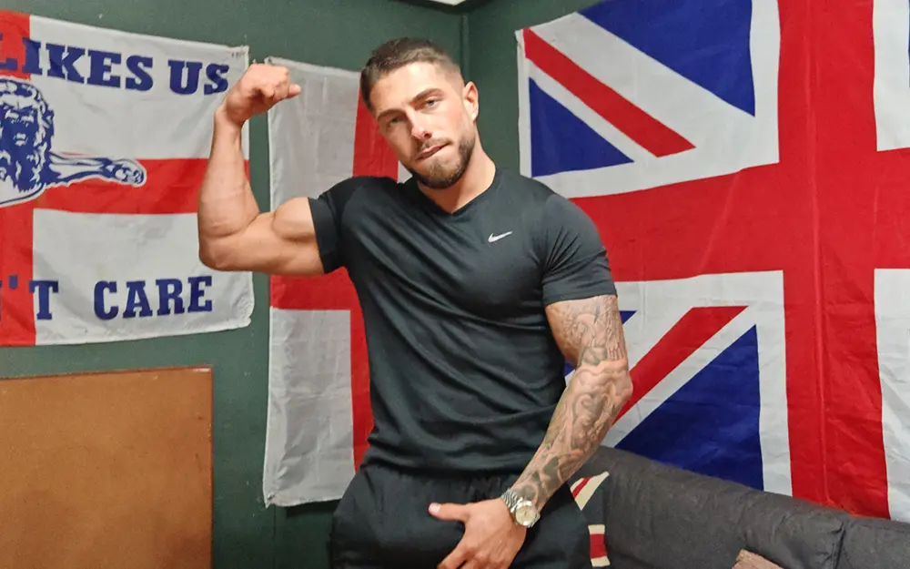 London born and bred, this lad carries himself with that calm, unshakeable confidence you only get from knowing you’re built properly. Broad chest, thick arms, inked forearms and a stare that doesn’t blink first, Jayme’s got the kind of presence that fills a room before he even moves.
